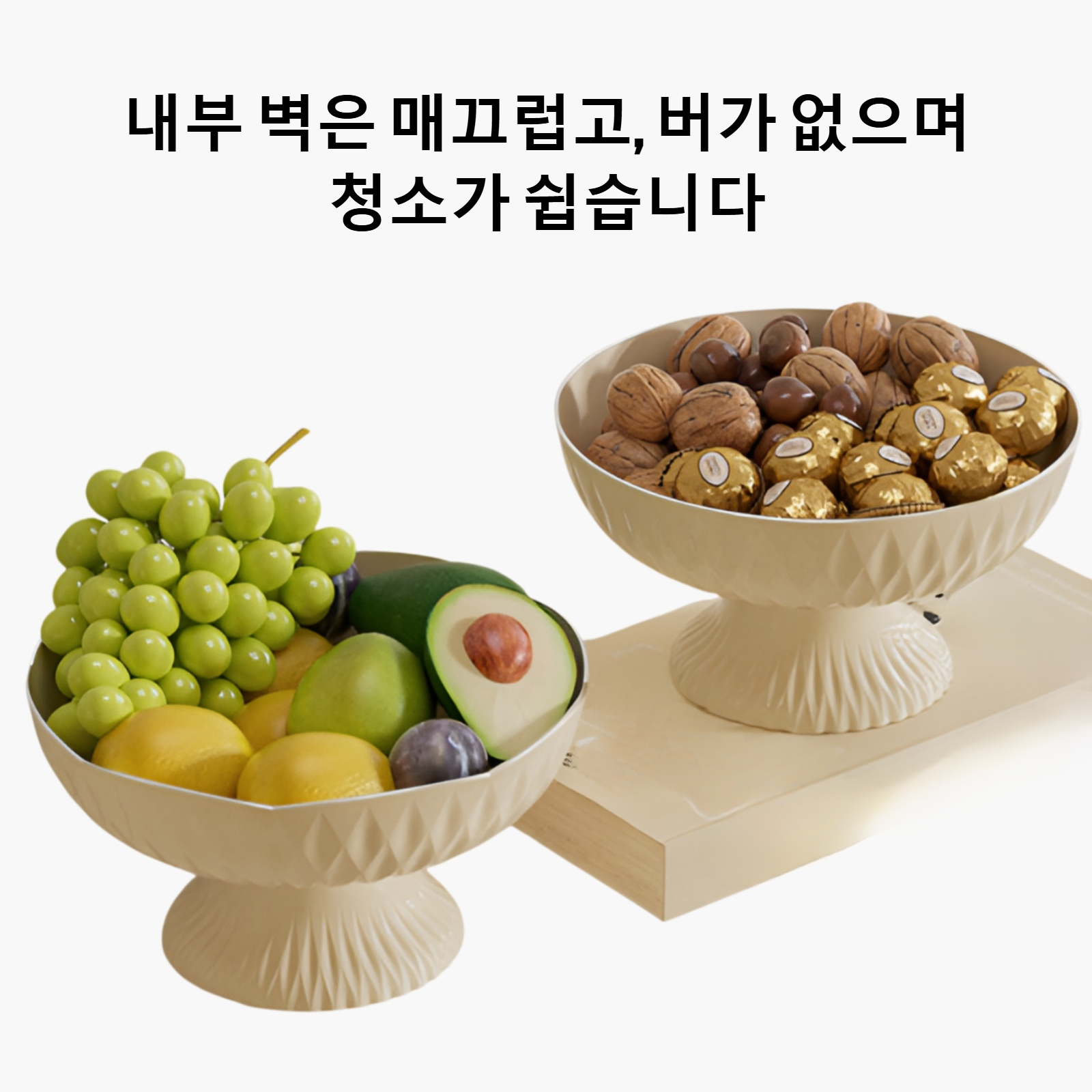 가볍고 고급스러운 과일 접시, 내구성 좋은 소재, 세련된 디자인, 다양한 공간에 어울림, 손쉬운 세척, 실용적인 크기.