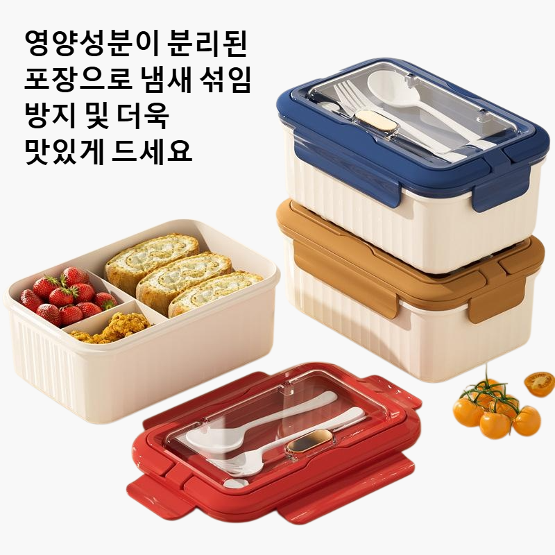 대용량 도시락 용기(수저 포함)로 넉넉한 수납, 위생적 소재, 휴대 간편, 다회용 가능, 환경 친화적