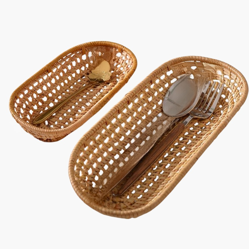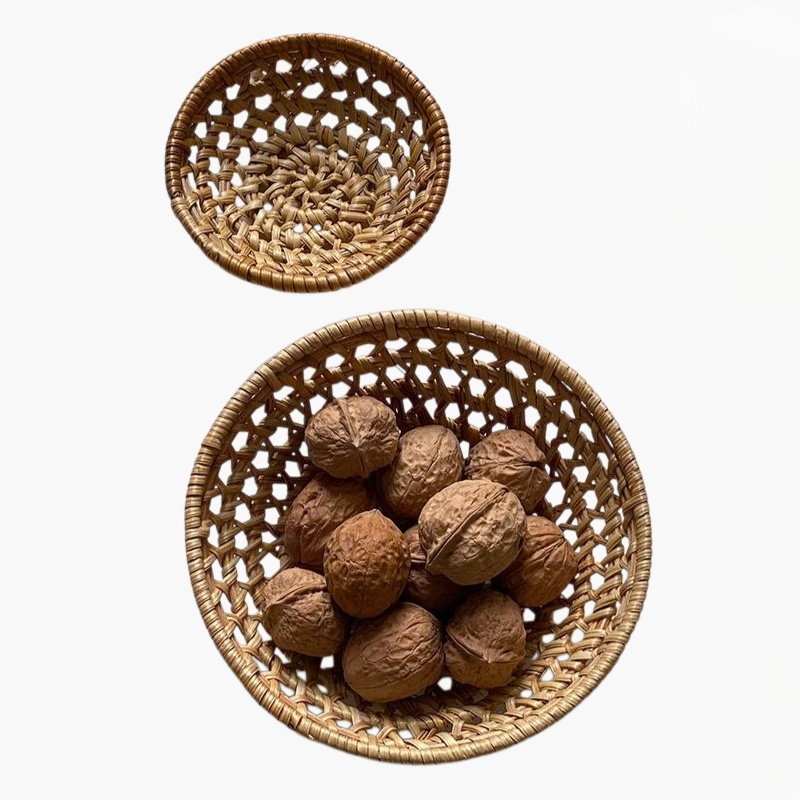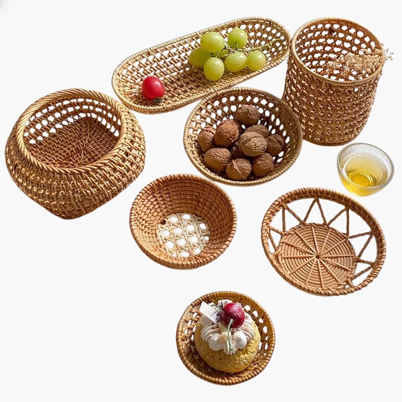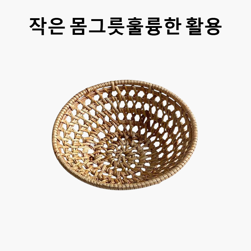 라탄 스낵 접시와 과일 접시, 내추럴 감성의 핸드메이드, 다양한 용도, 견고한 내구성, 인테리어 소품으로 활용 가능
